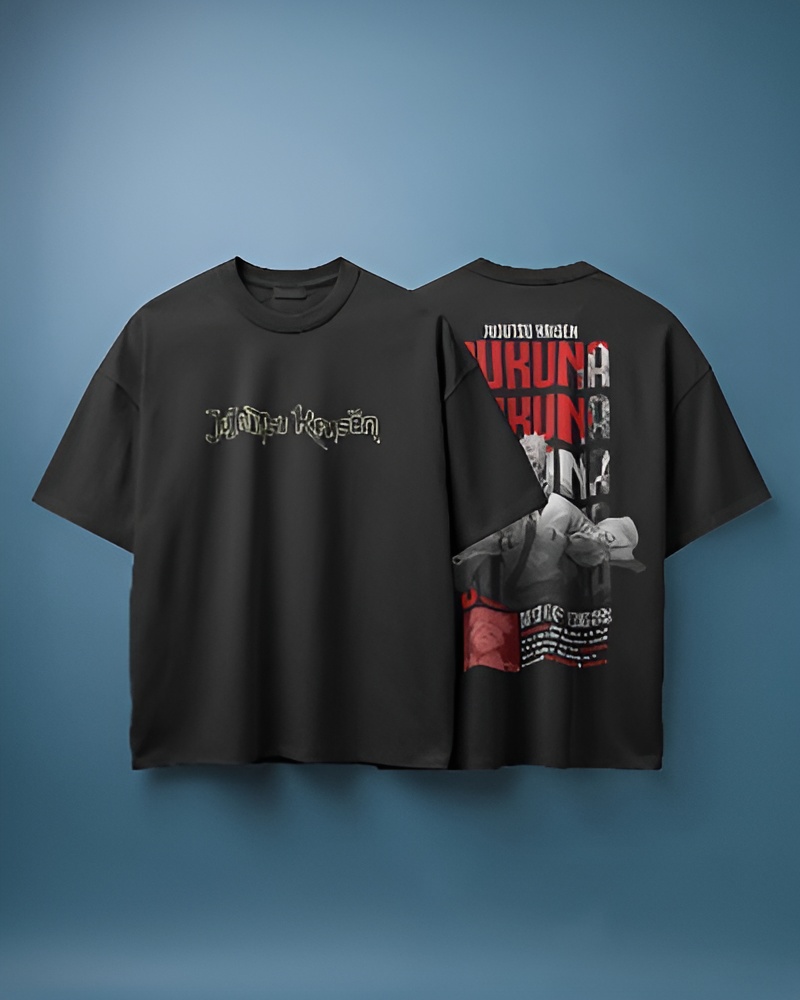 Malevolent, intricate, and commanding, The Cursed Domain Graphic Tee transforms a simple black shirt into a tribute to the King of Curses. This design is for those who appreciate the darker, more aggressive side of anime aesthetics. It features the “Jujutsu Kaisen” logo in a jagged, chrome-effect font on the chest, while the back showcases Ryomen Sukuna performing his domain expansion, layered over glitch-style red “SUKUNA” typography. It suggests a power that cannot be contained. Whether you are a manga reader or just love dark streetwear, this tee adds an instant “villain arc” energy to your outfit.